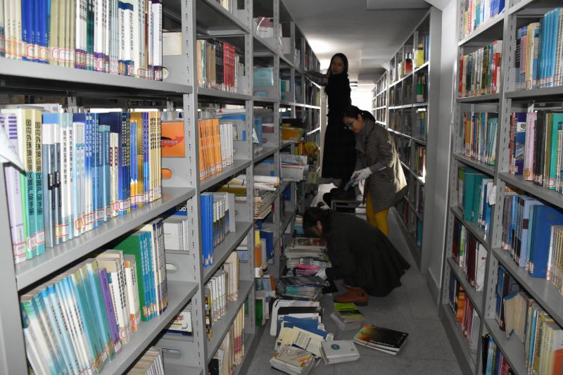 二线书库是放置图书馆借阅率较低的图书的地方,光线昏暗、楼道狭窄、没有电梯,冬冷夏热,条件艰苦,劳动强度大,一般人很难适应这里的环境。今天,在党十九大精神的指引下,本着服务群众、关爱读者的宗旨,党员同志们克服上述诸多困难,不论是普通党员还是党员领导干部,大家在支部的统一指挥下,用双手将从阅览室下架的低借阅率图书通过狭窄的楼道搬到书库里面,昏暗的书架下即使开着灯也很难看清图书的分类,同志们就用手机增加照明亮度,将搬运上来的一本本图书整理好上架。支部多数党员都人逾中年,而且多数都是女党员,她们中眼花体弱的也不少,但是面对高强度的劳动大家都毫无怨言,搬书、分类、倒架、上书、整架,动作干净麻利,丝毫不逊于男同志。火热的劳动现场,每位党员都用自己攻坚克难的的实际行动践行着共产党人的初心,圆满地完成了组织交给的任务。