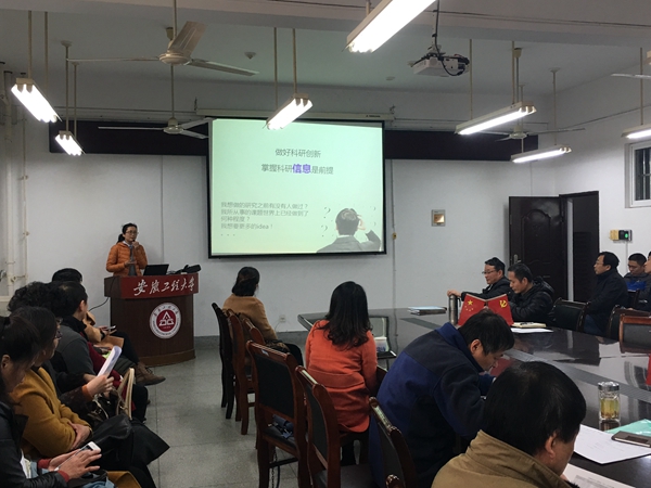 11月22下午,图书馆在机械与汽车工程学院会议室为教师们举办了“利用Web of Science进行创新性科学研究”的主题讲座。主讲人是中国科技大学图书馆信息咨询部主任樊亚芳博士。此次培训旨在提高教师们利用Web of Science数据库,获取全方位信息和开展创新性研究的能力,以及如何寻找合适的投稿期刊,提高成功率。