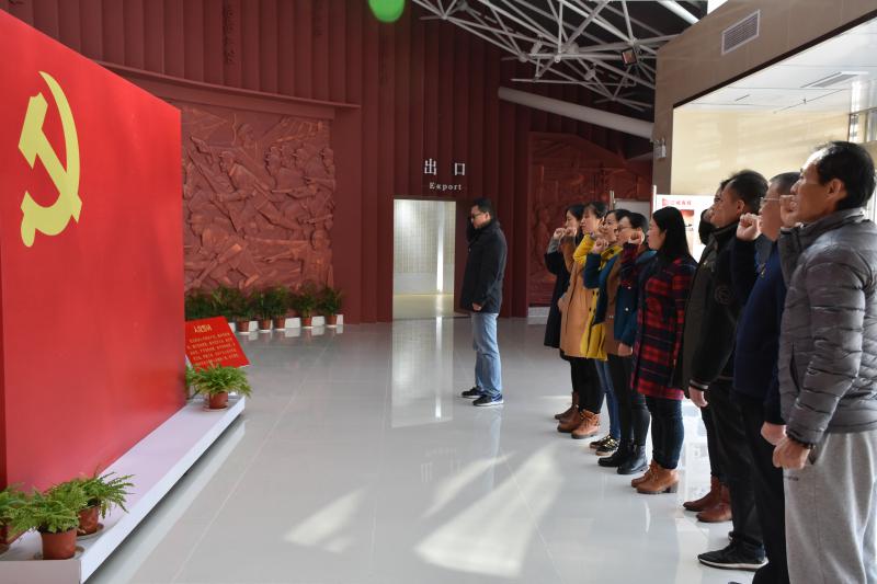 在革命烈士纪念馆里,面对鲜艳的中国共产党党旗,在支部书记郭建彬的领誓下,同志们举起右拳,郑重宣誓:“我志愿加入中国共产党,拥护党的纲领,遵守党的章程,履行党员义务,执行党的决定,严守党的纪律,保守党的秘密,对党忠诚,积极工作,为共产主义奋斗终身,随时准备为党和人民牺牲一切,永不叛党。”铮铮誓言久久回荡,表达了同志们“不忘初心、牢记使命”的坚定政治信念和为党的事业奋斗终生的不悔承诺。