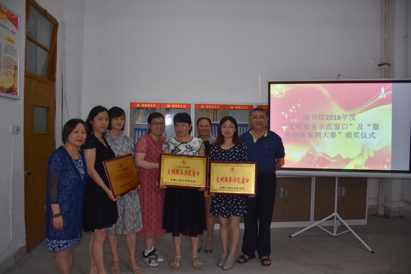 “文明服务示范窗口”评选是图书馆党支部的一项特色工作,为持续推进“两学一做”学习教育常态化制度化,引导党员树立模范带头示范作用,立足本职岗位以优异成绩迎接建党97周年,图书馆党支部开展了图书馆2018年度文明服务示范窗口评选工作,该项工作已经持续多年。经由图书馆全体职工民主推荐、读委会成员和读者评选,并经馆内公示,最终自然科学图书借阅区(3)、社会科学图书借阅区(2)、外文图书借阅区和科技图书阅览区3个窗口从14个候选一线服务窗口中脱颖而出,荣获图书馆2018年度“文明服务示范窗口”光荣称号。
