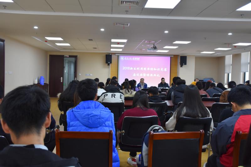 2018年11月28日下午,在图书馆813职工之家举行了2018级新生读者利用图书馆知识竞赛颁奖暨新生读者座谈会,来自全校十二个学院的五十余位同学参加会议。会议由图书馆信息参考部主任郭红转主持,郭主任依次介绍了出席会议的图书馆领导,包括副馆长李琛、综合服务部主任刘献民、资源建设部主任张彤彤、流通阅览部主任郭建彬。