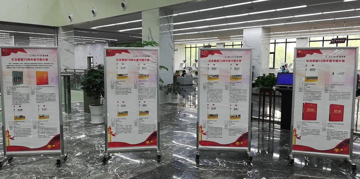 为庆祝新中国成立70周年,在第14个读者服务宣传月到来之际 ,图书馆于近日举办了建国70周年图书图片展。