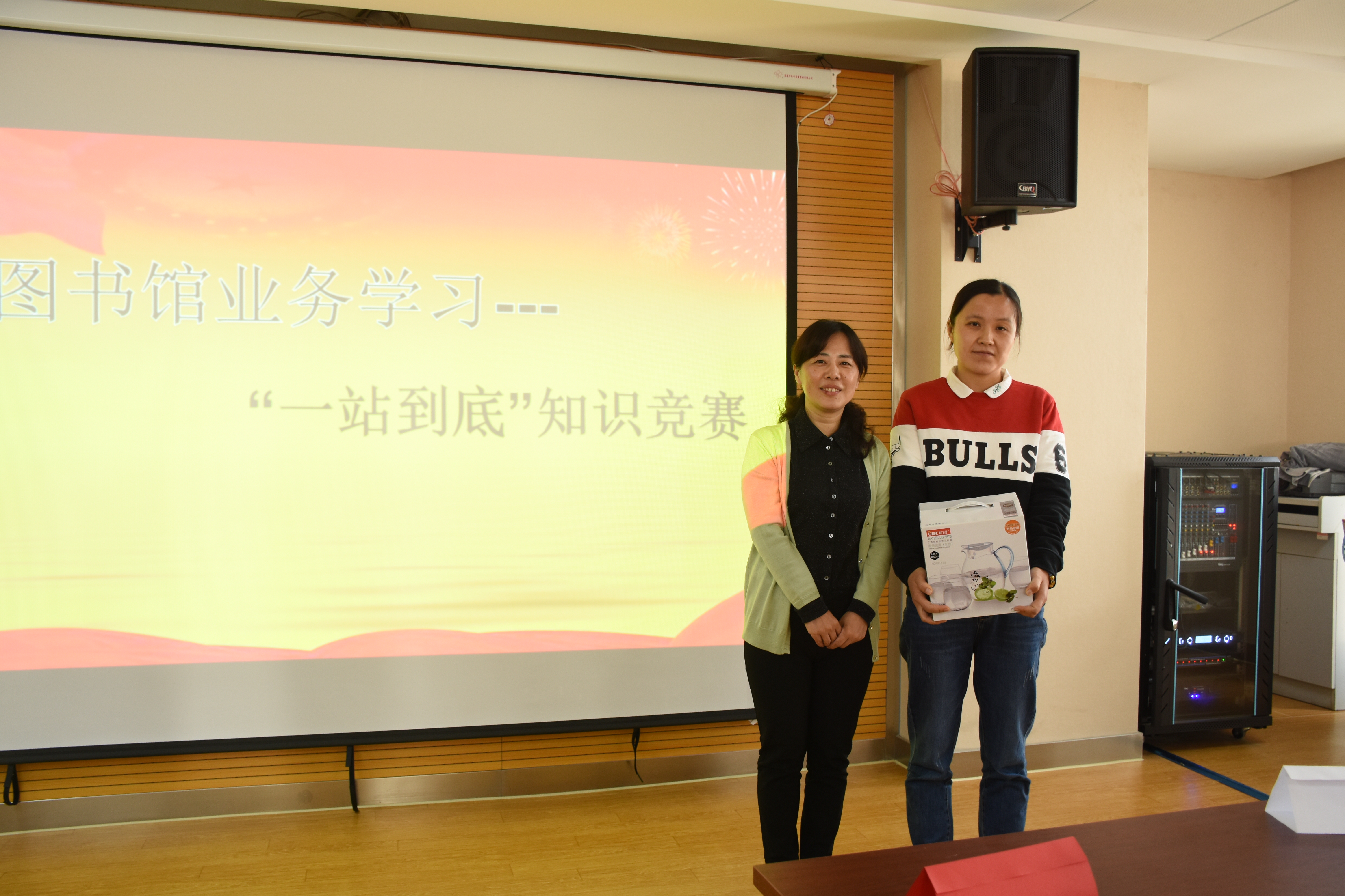 为了提高图书馆馆员业务知识水平,增进图书馆员工互相了解,更好地把“首问负责制”落到实处,图书馆在10月10日和10月17日业务学习时间举办“一站到底”知识竞赛活动。