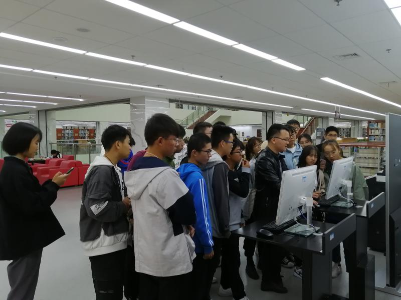 本次活动中,参观图书馆环节,在图书馆张耀和刘克涛二位老师的带领和讲解下,完成了2019级新生对图书馆借阅区及其特色区域的参观。二位老师在参观途中讲解了图书馆的馆藏分布、资源检索方法,以及自助借还书机、歌德电子书借阅机等设备的使用,并安排新生实践体验。活动最后还设有限时竞答环节。