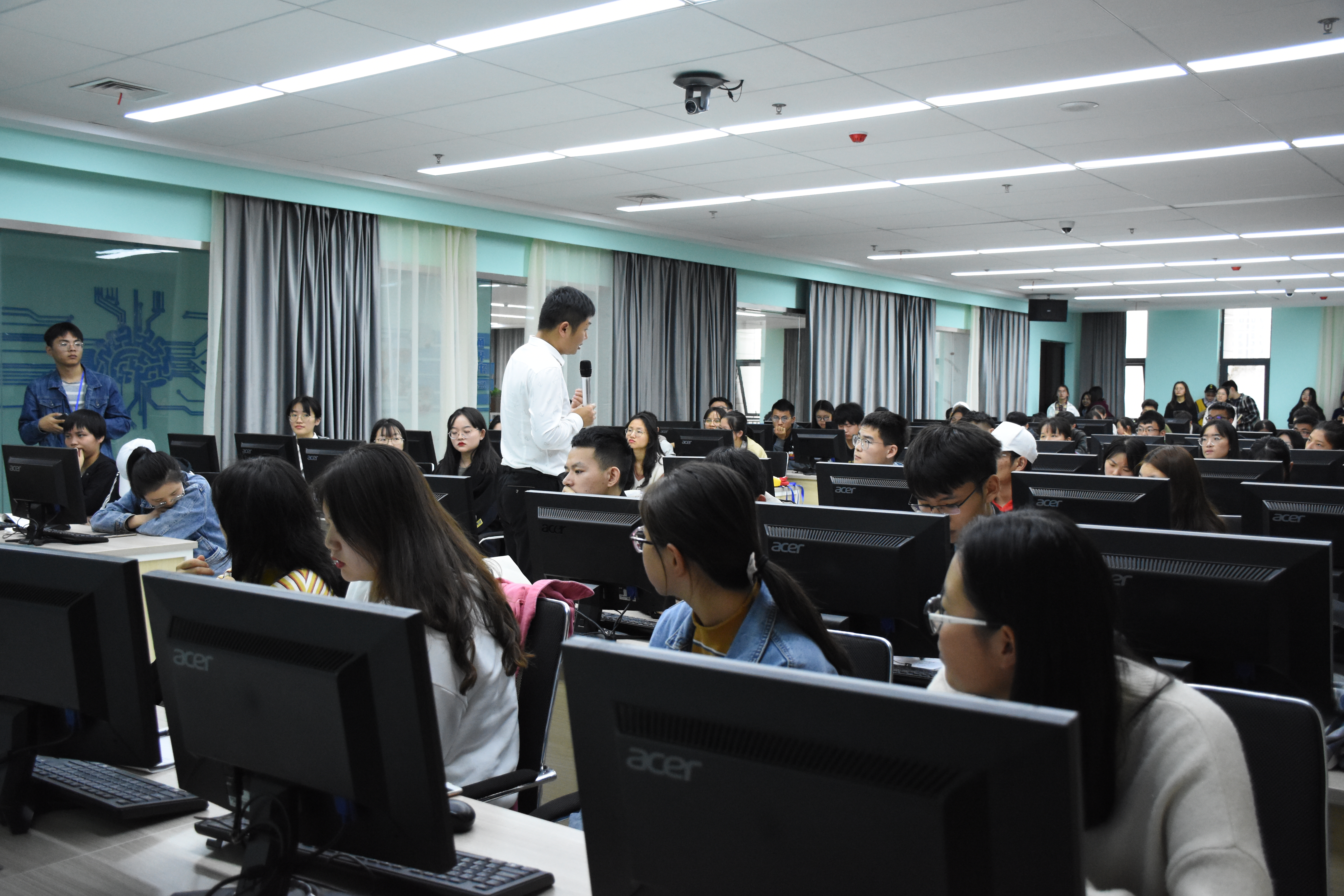 在互动环节,同学们热情积极,所提问题涉及专业选择、学校选择、如何复习备考等有关考研的方方面面,朱老师就每个同学的问题,做出了耐心细致的解答。讲座结束后,很多同学没有离场,继续请教关于考研的问题,朱老师一一解答,给出了很多切实有效的建议。