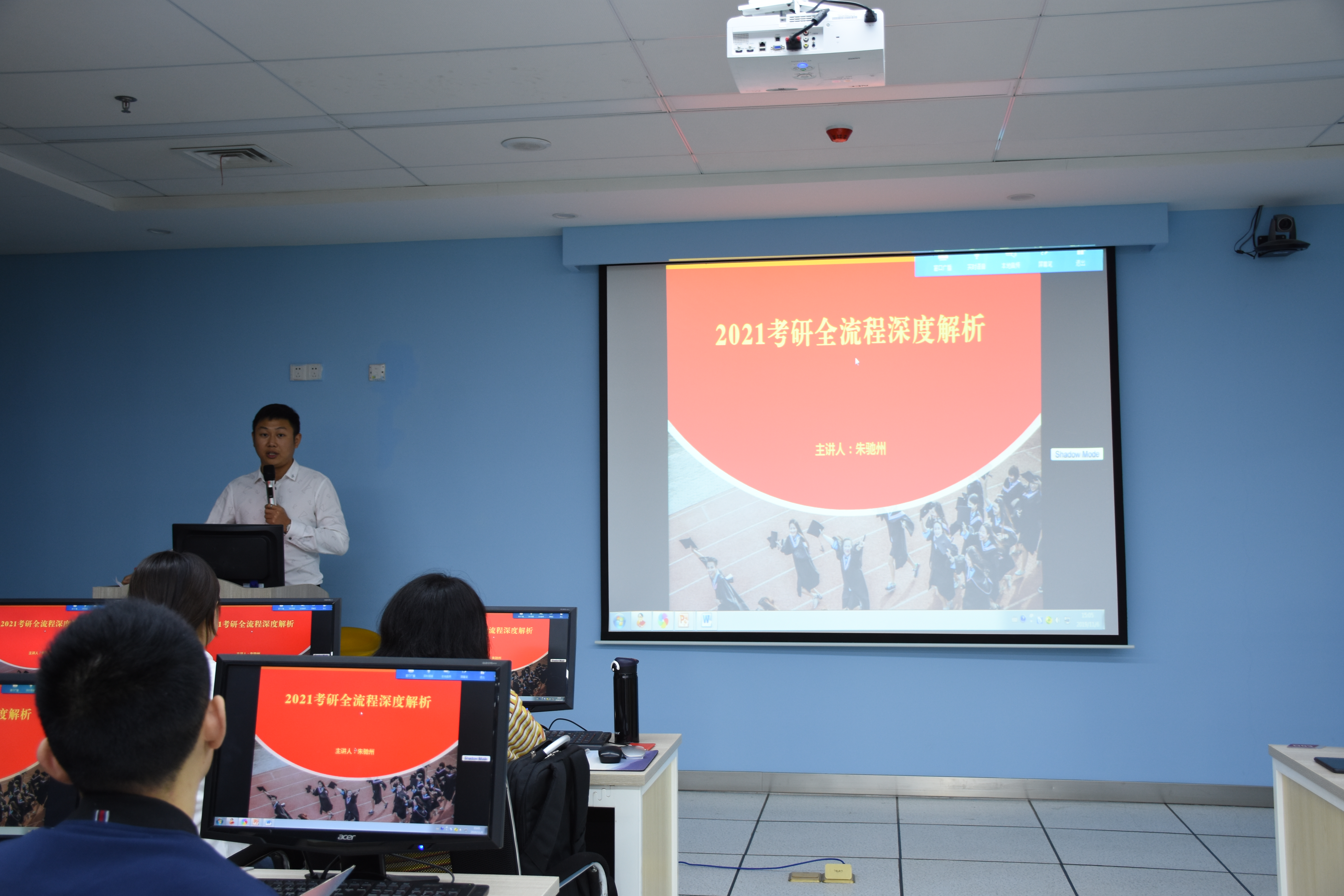 朱驰州老师是中国科学技术大学硕士,考研规划专家,跨考考研首席巡讲师,有着10余年考研辅导经验。此次讲座朱驰州老师对考研全流程做了深度解析,内容主要涉及今年考研考情、考研关键流程精析和考研全程复习规划。讲座中朱老师用真实的案例和精准的数据,分析了考研形势的严峻;总结梳理了考研的时间重要节点;分享了有效获取考研资料、合理规划考研初期、中期及最后冲刺阶段复习的方法。有效实用的方法与精彩的讲解引起了同学们的极大兴趣。整场讲座幽默风趣,富有感染力,得到了大家的一致认可。