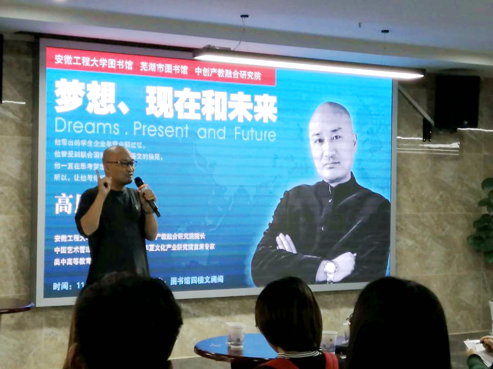 11月13日下午,我校图书馆和芜湖市图书馆联合举办的真人秀活动在文澜阁如期举行,本活动由我校图书馆副馆长李琛主持。本季真人秀的特邀嘉宾是来自艺术学院的高原老师,主题为“梦想、现在和未来”,活动反响热烈,持续了两个多小时。