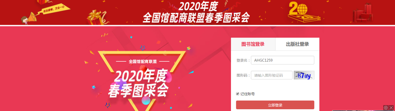 2、选择【图书馆荐购】→输入【登录名:AHGC1259】→系统自动识别【图书馆名称】→输入【图形码】即可登录