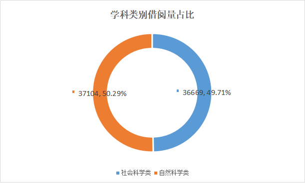 虽然我校是传统理工类院校,但从学科类别的借阅量占比来看,社会科学类和自然科学类的图书借阅量比例几乎1:1,说明我校学科分布较为均衡,也说明我校学子对自然科学和社会科学类图书同等偏爱。