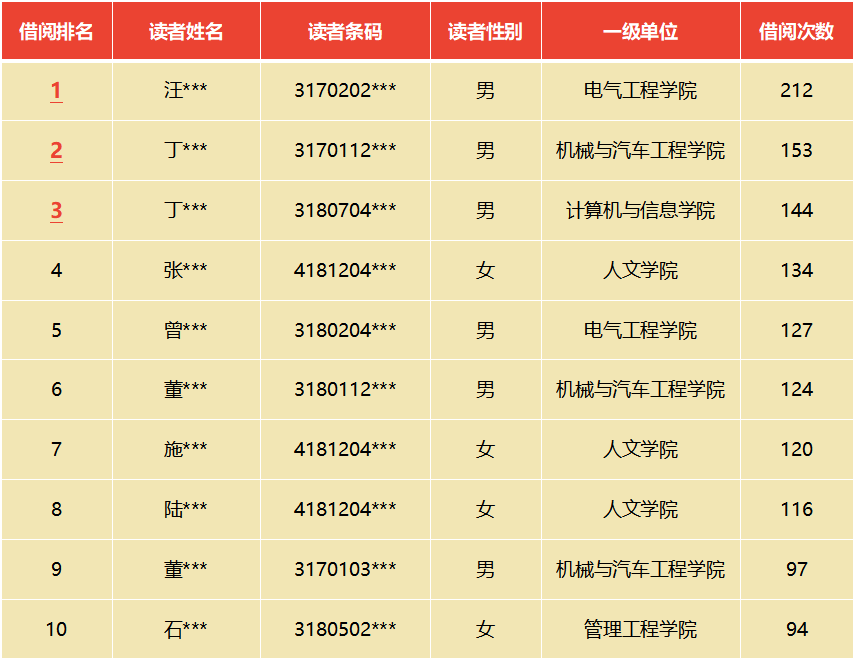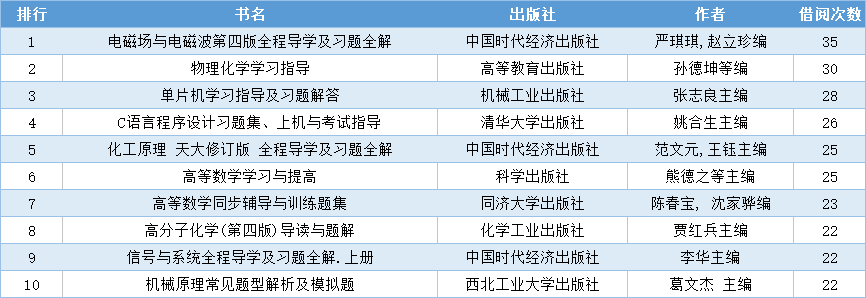 掌声送给以上榜单上的借阅达人们,你们是安工程最爱读书的人~