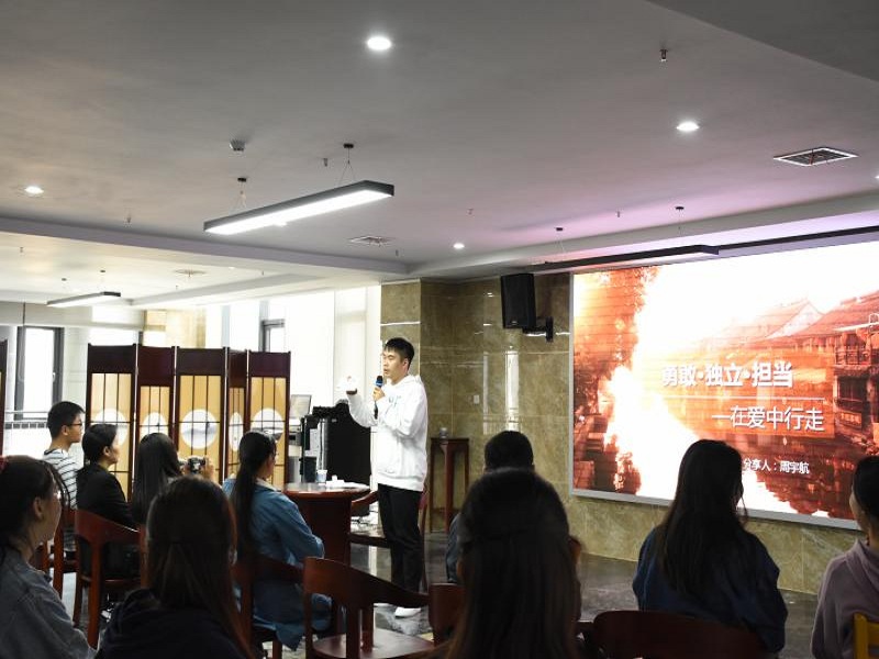 邀请讲座:“真人show”是读者服务宣传月的品牌活动,本次“真人show”邀请我校优秀学生周宇航与同学们进行面对面的交流,周宇航同学以“勇敢”“独立”“担当”“在爱中行走”四个主题跟同学们分享了自己别样的人生经历。