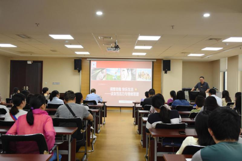 为更好地服务于师生,做好读者服务工作,图书馆6月18日特邀安徽工业大学大学生心理健康教育咨询中心主任、学生工作部副部长王军教授,在813会议室为全馆教职工开展“调整自我,快乐生活——谈女性压力与情绪管理”的心理讲座。讲座由图书馆馆长王忠群主持。