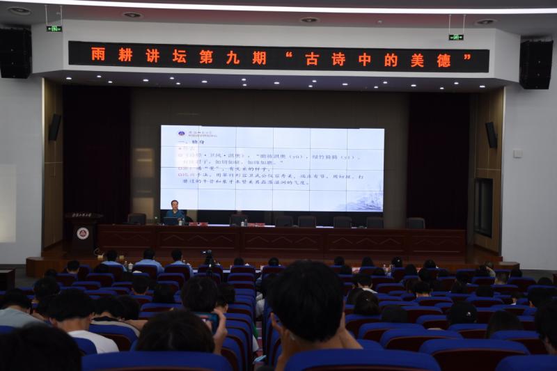 5月25日,安徽师范大学中国诗学研究中心主任,文学院博士生导师胡传志教授应邀做客雨耕讲坛,为我校师生讲授“古诗中的美德”。讲座由图书馆副馆长李琛主持。我校线上线下近500名师生聆听了本次讲座。