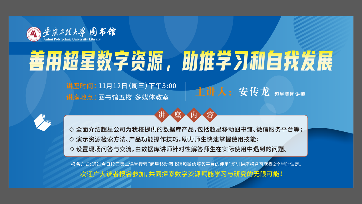 讲座主题:善用超星数字资源,助推学习和自我发展