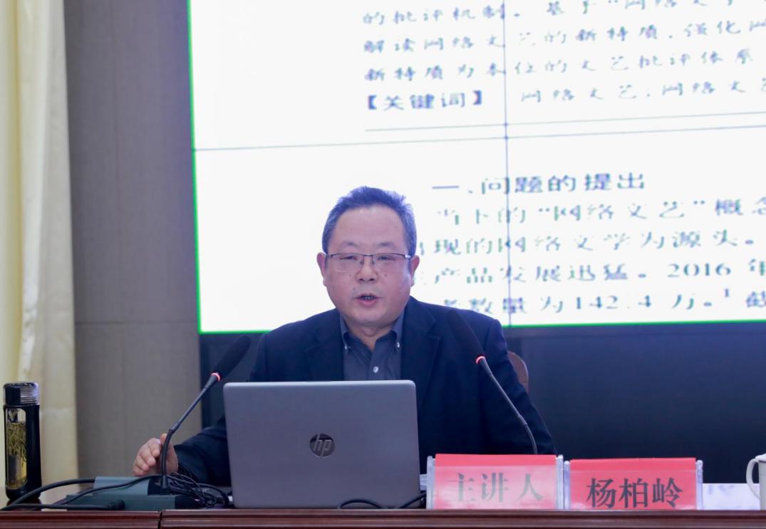 1112日下午,校第六期“经典悦读”班专家报告会暨第十九期“雨耕讲坛”讲座在图书综合楼5楼会议室举行。安徽师范大学博士生导师中国古代文学理论研究会理事、中国词学研究学会常务理事、安徽省学术和技术带头人、皖江学者特聘教授、国务院特殊津贴专家杨柏岭教授应邀作题为《融媒体时代中华经典的阅读》的报告。“经典悦读”班和“雨耕讲坛”共800余名师生参加。报告会由图书馆馆长李琛主持。