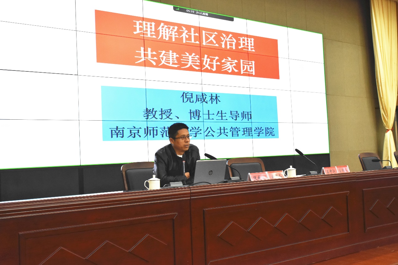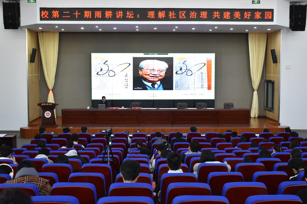 11月26日下午,学校第二十期“雨耕讲坛”在图书综合楼五楼会议室顺利举行。本次“雨耕讲坛”特邀南京师范大学公共管理学院副院长、博士生导师、瑞华慈善文化研究院副院长倪咸林教授,作题为《理解社区治理,共建美好家园》的专题报告。全校师生共计800余人参加,讲座由图书馆副馆长王中江主持。