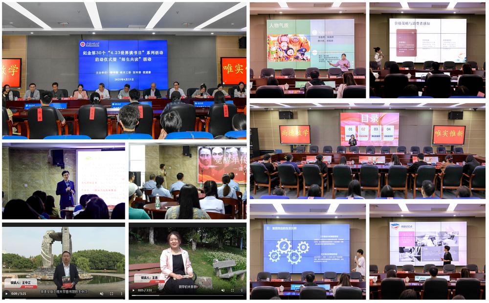 作为我校落实“推动全民阅读、建设书香中国”部署的特色载体,“师生共读”活动于2022年启动,由图书馆、宣传部联合学校多个职能部门协同打造,形成线上线下融合、多维立体的阅读推广体系。通过读书分享会、录制读书分享视频、“雨耕讲坛”专题讲座、有声读本、书评大赛、主题书展等形式推进共读活动开展。至今已累计举办《共产党宣言》《觉醒年代》《新质生产力:中国创新发展的着力点与内在逻辑》《非洲三万里》等大型读书分享会10余场;录制《遇见心想事成的自己》《墨菲定律》《习近平与大学生朋友们》等线上读书分享视频12期;推送图书馆微信公众号“师生共读”好书推荐专栏56期;举办“雨耕讲坛”12期。全校师生积极参与读书文化活动、撰写读书心得、分享阅读感悟等阅读推广活动,形成了浓厚的校园阅读氛围。