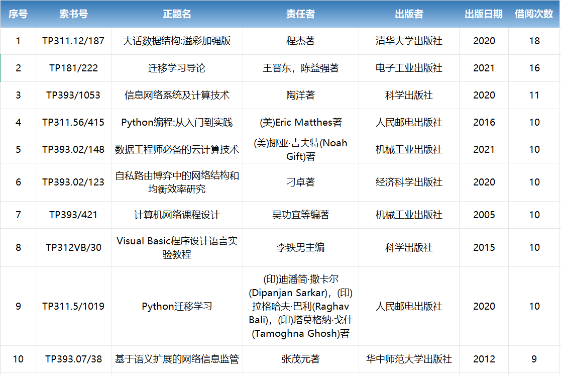 图8:自然科学图书借阅排行榜