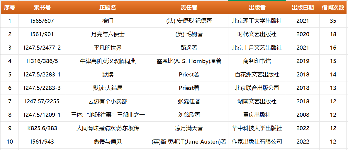 图9:社会科学图书借阅排行榜