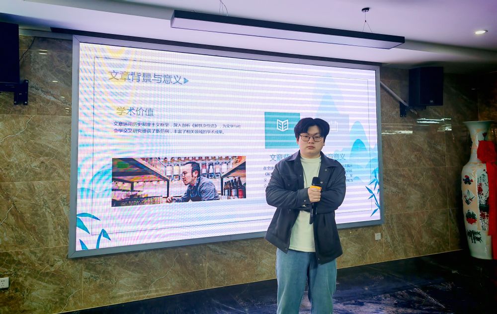 活动现场,来自数科241的主讲人石安弘同学从作品背景与作者创作转型、剧情与角色解析、主题内涵、社会病理分析、人性微光等层面展开系统分享。分享先介绍了作者从推理悬疑到温情治愈的创作突破,解读了小说中 “信件穿越时空” 的奇幻设定,让大家快速把握故事脉络与核心设定。在深度解读环节,石安弘同学以历史制度主义为框架,剖析了小说独特价值。交流环节中,社员们结合当下社会现象,畅谈阅读感悟,在思想碰撞中深化对文本与现实的理解。
